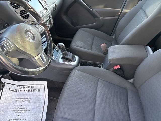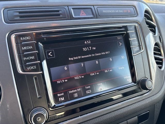 Hop into this sleek Blue 2017 Volkswagen Tiguan and get ready for a thrilling ride! This beauty is not just any ordinary SUV; its packed with all the bells and whistles to make every drive an unforgettable experience. Picture yourself cruising down the road with the sunroof wide open, feeling the wind in your hair and the warmth of the sun on your skin. The panoramic sunroof is just one of the many features that make this Tiguan stand out from the crowd.Inside, youll find a spacious interior with plush leather seats that are not only comfortable but also easy to clean - perfect for those spontaneous road trips or last-minute coffee runs. The heated seats will keep you warm and cozy on those chilly mornings, while the dual-zone climate control ensures that you and your passengers are always at the perfect temperature.But lets talk about the real star of the show - the touchscreen display. With Bluetooth connectivity, you can easily stream your favorite music or podcasts, make hands-free calls, and even navigate to your next destination with ease. And with the backup camera, parking has never been easier - no more awkward parallel parking situations!Safety is always a top priority, and this Tiguan has you covered with features like automatic emergency braking and blind-spot monitoring. You can drive with peace of mind knowing that you and your passengers are protected at every turn.The zippy turbocharged engine delivers a spirited performance that will have you grinning from ear to ear every time you hit the gas. Whether youre running errands around town or embarking on a weekend getaway, the Tiguans smooth handling and responsive steering will make every drive a joy.So if youre looking for a stylish, versatile, and fun-to-drive SUV, look no further than this Blue 2017 Volkswagen Tiguan. With its impressive features and sleek design, this Tiguan is sure to turn heads wherever you go. Dont wait - schedule a test drive today and experience the thrill for yourself!